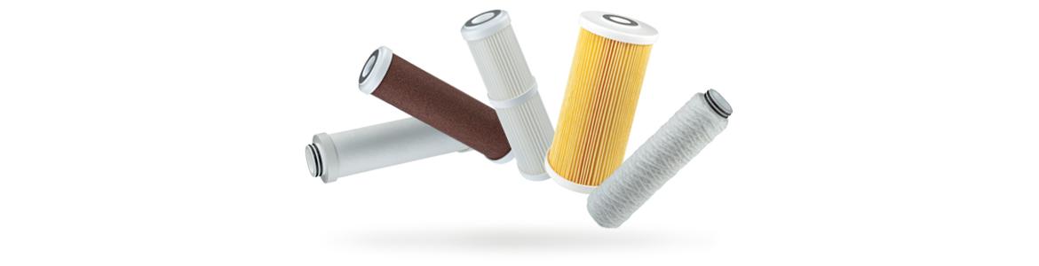 Water filter cartridges for filtration in depth of fine and very fine sediments.