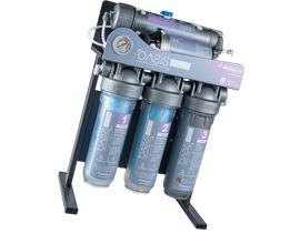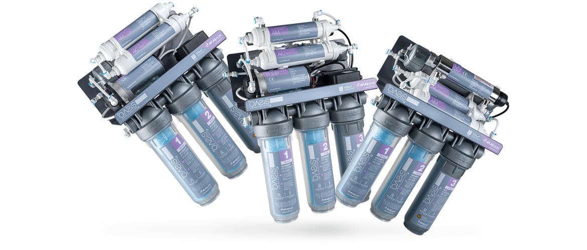- Prefiltración: 3 cartuchos de alta eficacia filtran y tratan el agua para prepararla para las etapas siguientes eliminando los sedimentos (como óxido, cal, limo) y reduciendo los olores y los COV (compuestos orgánicos volátiles)