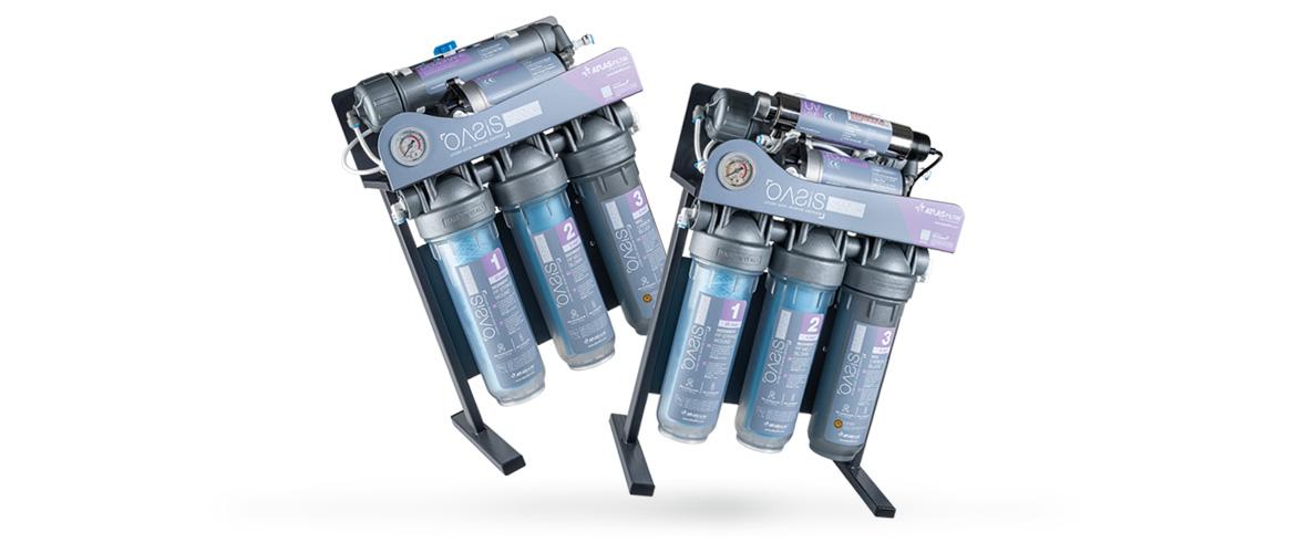 Oasis Sanic es un sistema de ósmosis inversa bajo fregadero para uso doméstico con tecnología antimicrobiana, diseñado para mejorar el agua potable.